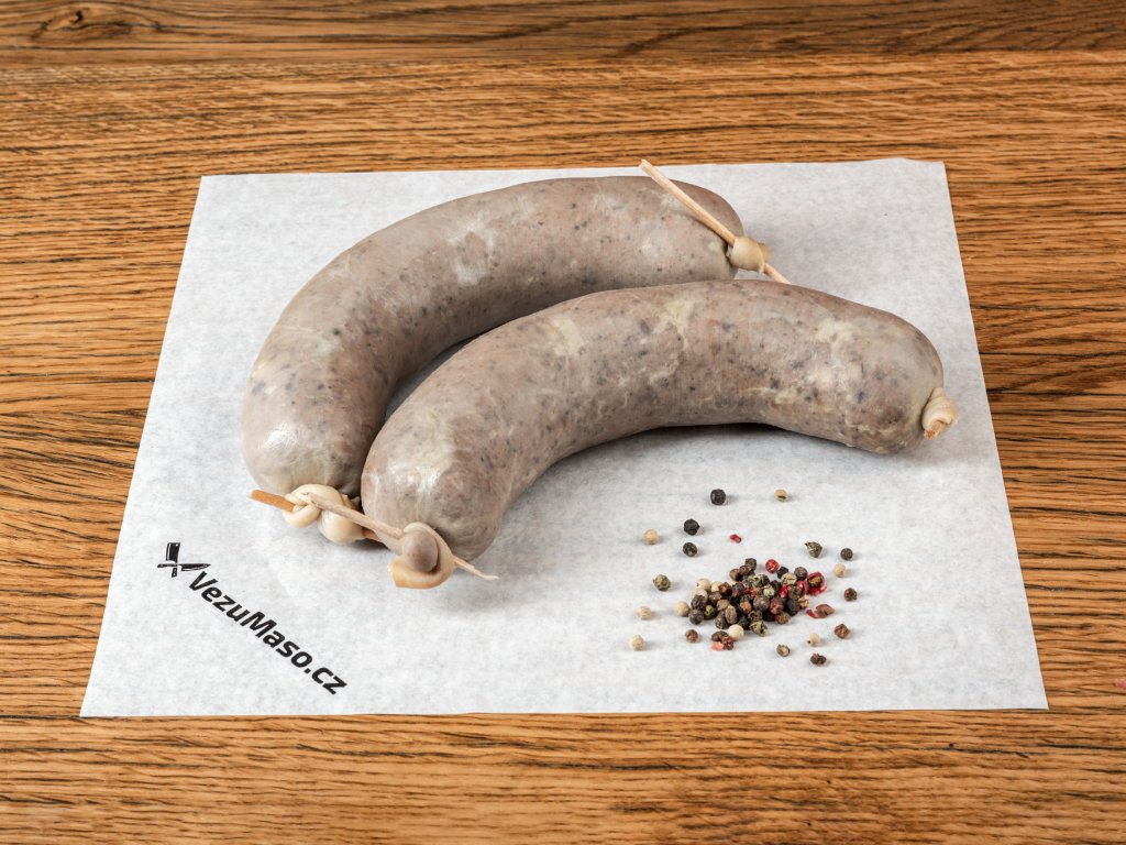 - Tradiční ručně špejlované zabijačkové jaternice od regionálního výrobce z Mirošova.