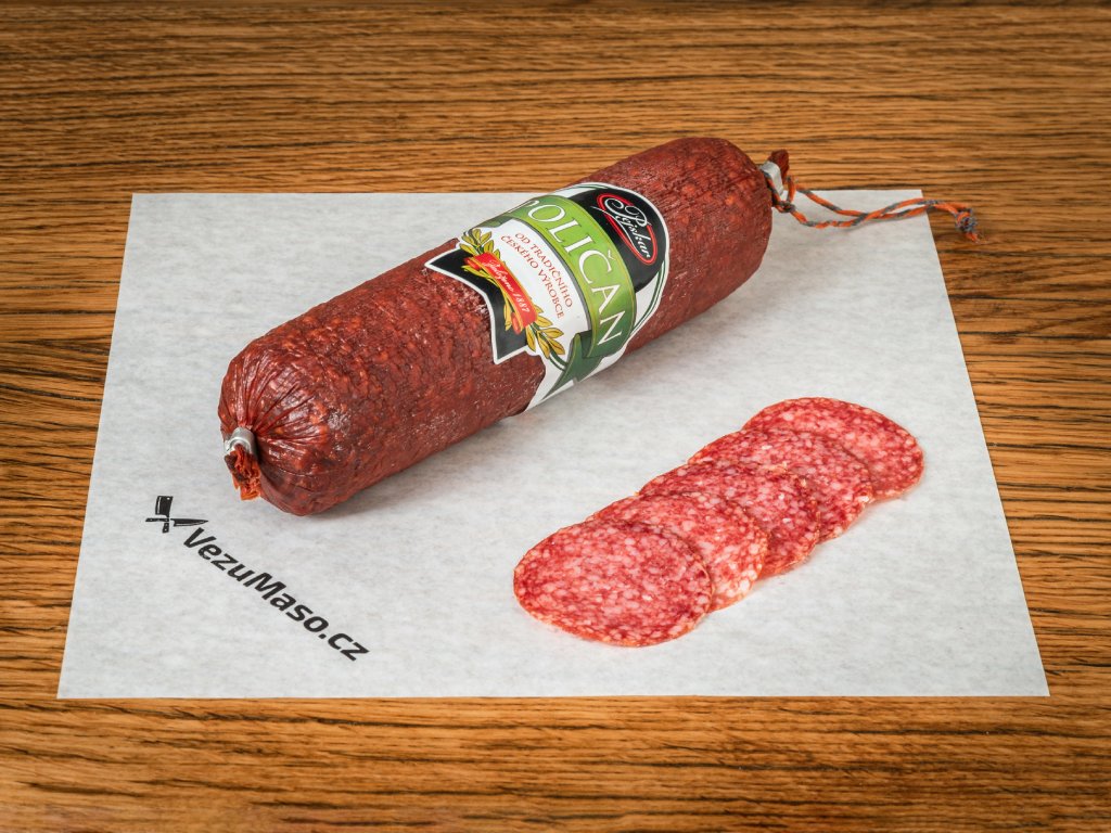 - Tradiční český fermentovaný salám s výraznější kořeněnou a vyuzenou chutí.
