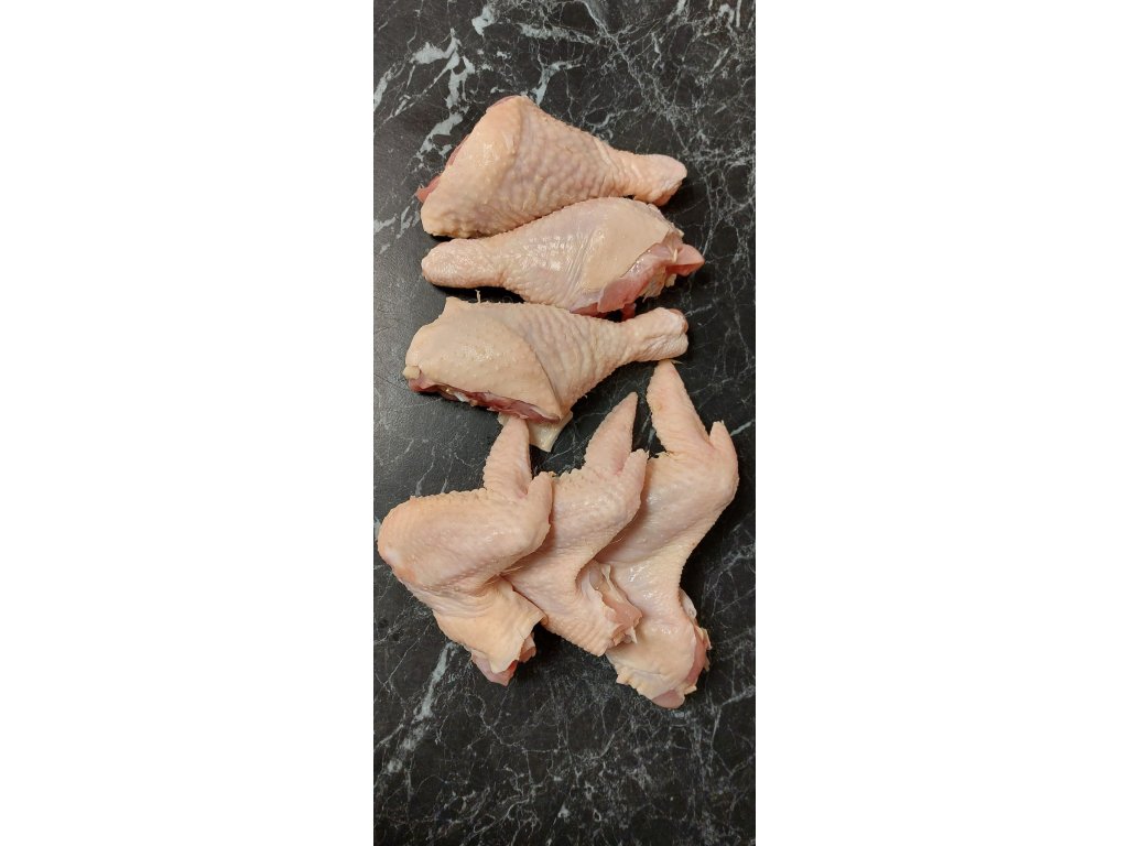 Složení balíčku: 3x kuřecí palička, 3x kuřecí křídlo (váha cca 1,15 kg). Cena za 1 kg: 219 Kč