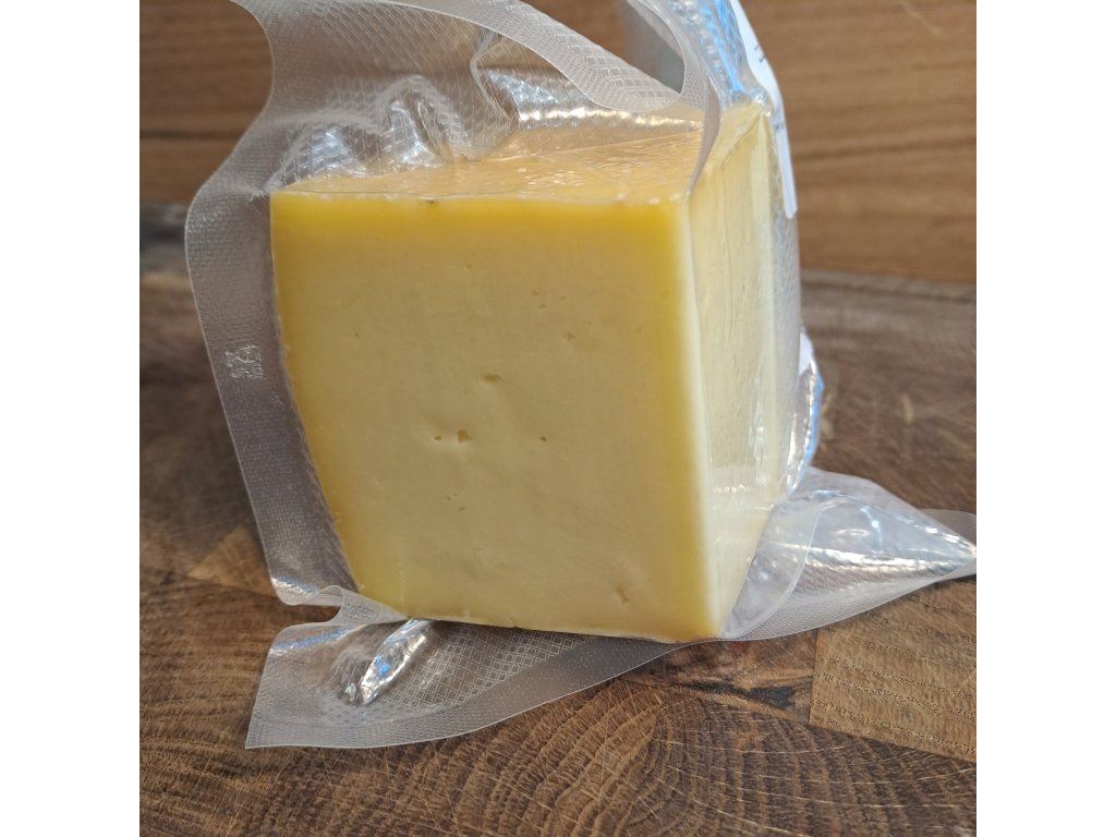 Přírodní zrající polotvrdý čistý sýr z kravského mléka zrající minimálně 2 měsíce.