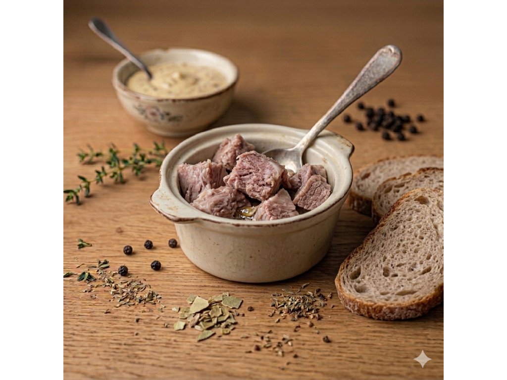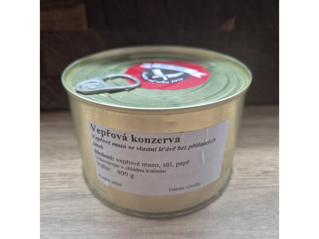 Objevte chuť poctivého masa ve vlastní šťávě. Vepřová konzerva z farmy Kottův mlýn je vyrobena s jediným cílem: nabídnout vám čistou a přirozenou chuť vepřového masa bez jakýchkoliv zbytečných náhražek. Jedná se o prémiový výrobek, kde hlavní roli hraje kvalita surovin a tradiční postup zpracování.